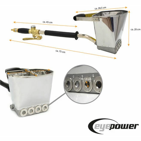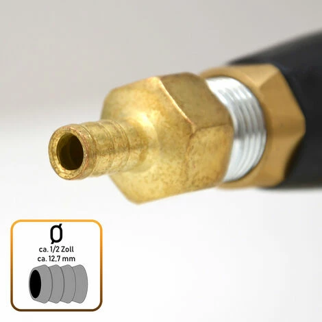 Im Set enthalten: 1/4 Zoll Schnellkupplung – 1/2 Zoll Stecker mit Schlauchanschluss. Damit die Düsen nicht verstopfen, stell den leeren Trichter nach dem Verputzen in einen Kübel mit Wasser und betätige den Abzug. Der Putzwerfer reinigt sich durch die Druckluft von alleine.