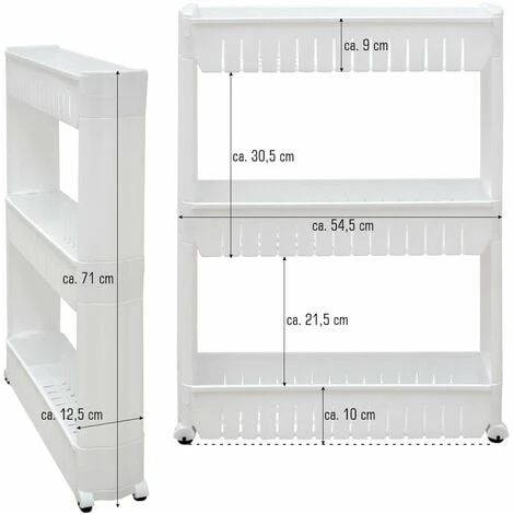 Küchen-Organizer für Flaschen, Dosen, Gewürze… Alles gut sortiert und unsichtbar verstaut. Der Rollwagen ist sogar bis ca. 9 kg belastbar.