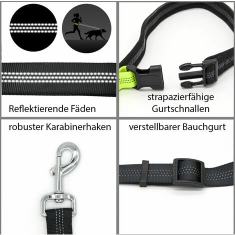 Stoppt der Jogger, federt die Leine und der Hund wird nicht mitgerissen. Wenn er zieht, bleibt die Leine in Form – Schnüffeln ist immer erlaubt. Die Bauchgurt-Leine ist mit Reflektor-Streifen versehen. So bleiben Sie sichtbar, falls Sie abends unterwegs sind. Wenn Sie über die Straße gehen: Etwas kürzer fassen, die Leine hat eine zusätzliche Handschlaufe.